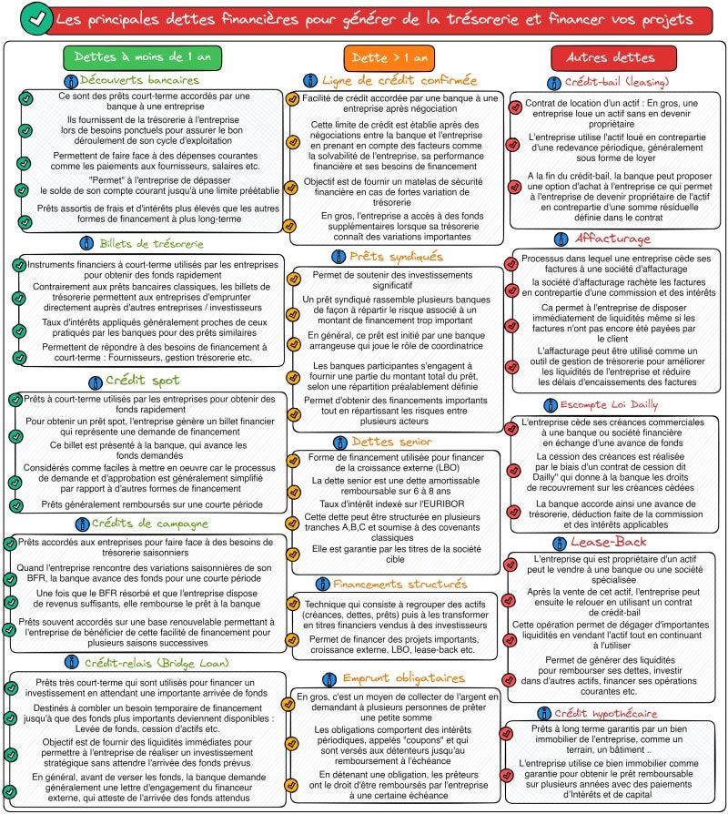 👉 Les financements moyen-terme, à plus de un an : Ligne de crédit confirmé, prêts syndiqués etc.